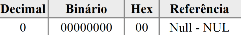 Como pode ser visto na figura abaixo, a codificação vazia é o primeiro critério codificado pela tabela ASCII, não poderia ser diferente, pois é a origem da codificação.