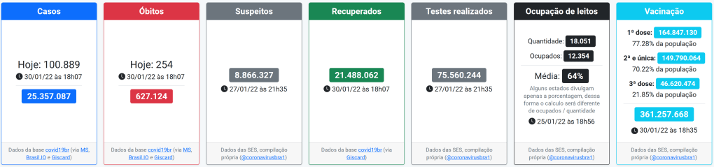 - Estatísticas do Brasil – John Hopkins University & Medicine