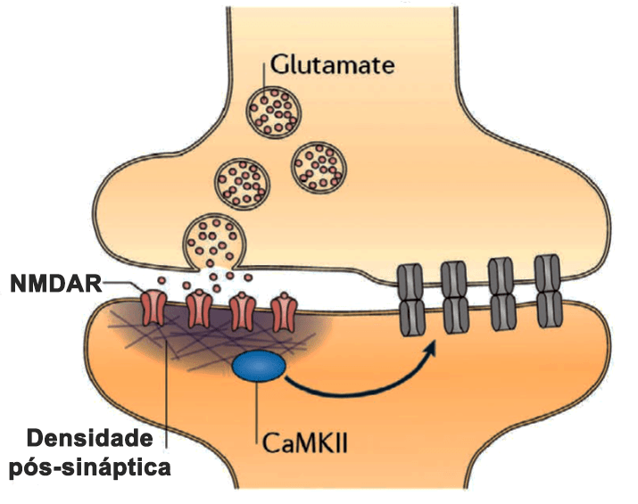 Quando o impulso nervoso atinge as extremidades do axônio, libertam-se para a fenda sináptica os neurotransmissores, que se ligam a receptores da membrana da célula seguinte, desencadeando o impulso nervoso, que, assim, continua a sua propagação.
