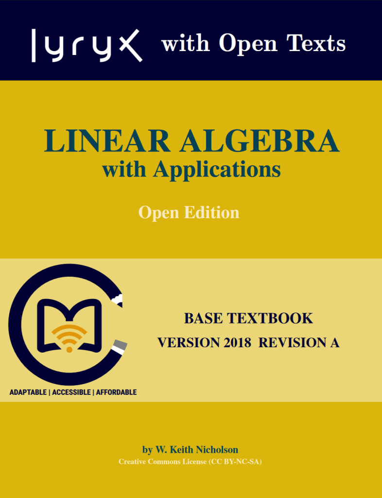 O entendimento de temas um pouco mais complexos requer uma adaptação do pensamento para assuntos técnicos que exigem um conhecimento matemático um pouco mais profundo. O Ebook Linear Algebra With Applications – W Keith Nicholson, é uma introdução à álgebra linear para estudantes que estão terminando o segundo grau e adentrando em cursos universitários. Clique na capa para iniciar a leitura. {RC}.
