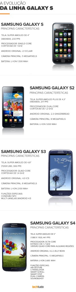 Evolução do Galaxy S ao Galaxy S IV (divulgação).