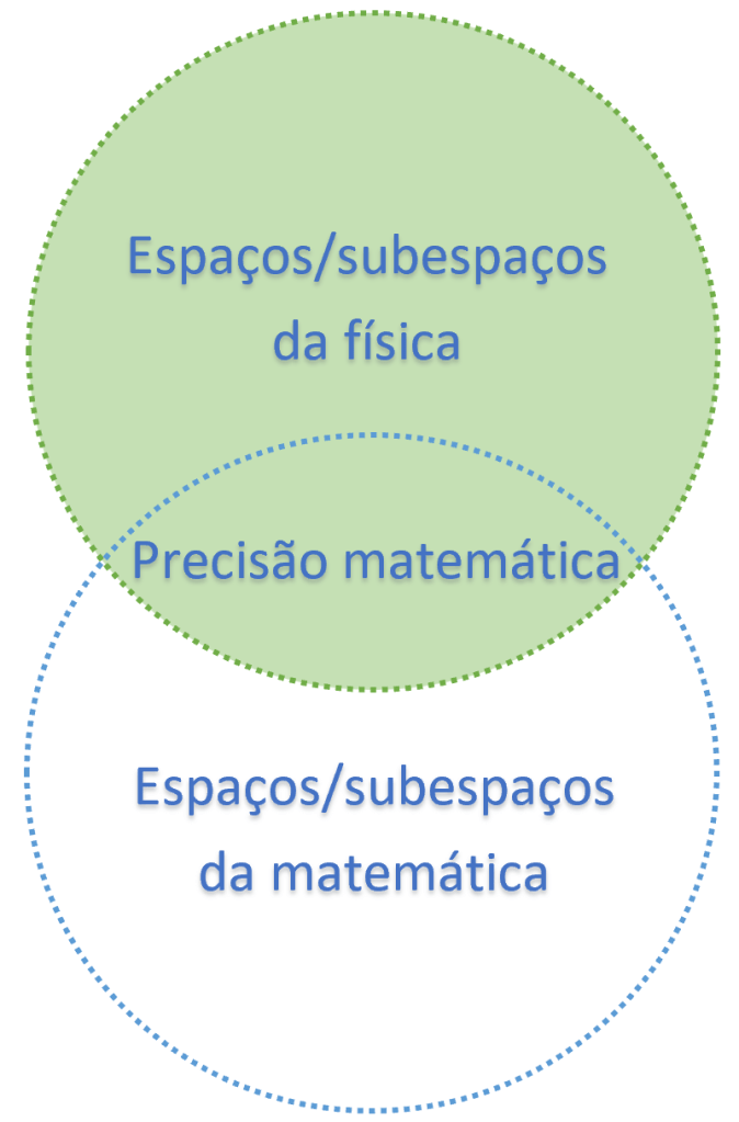 A interseção entre espaços/subespaços da física com a matemática, significa que alguns espaços/subespaços (conceitos/soluções/modelagem) matemáticos são válidos para a física, mas não todos.