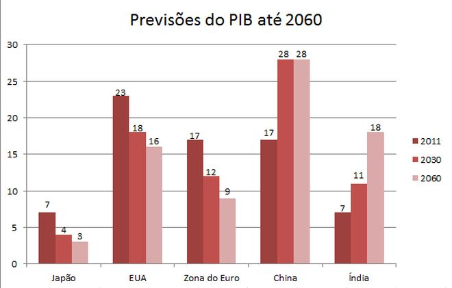 Previsão do PIB mundial até 2060. Fonte OCDE.
