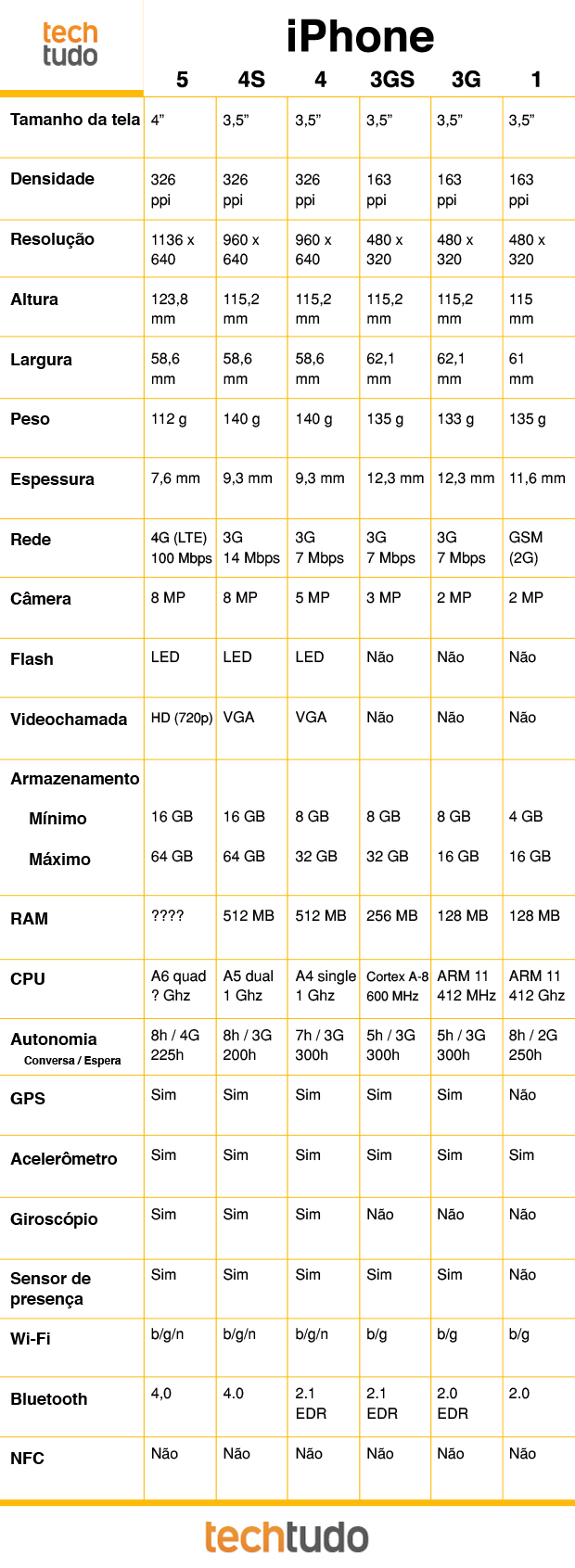 Comparativo do Iphone5 com todos os outros já lançados.